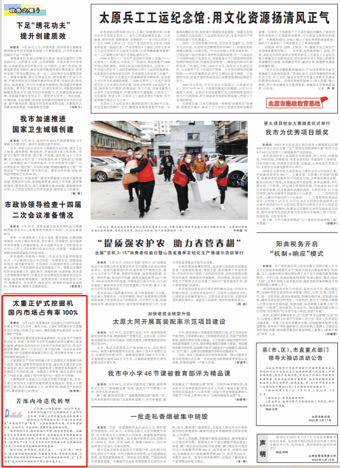 正铲式挖掘机国内市场占有率100%》为题对永利赌场
