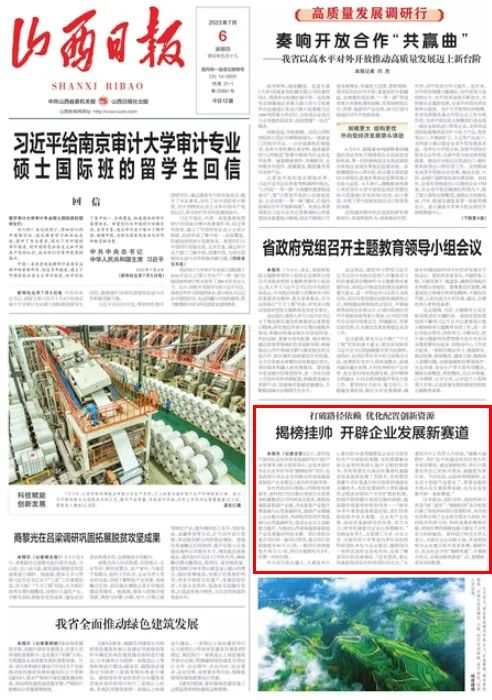 今天,山西日报头版刊发《揭榜挂帅 开辟企业发展新赛道》文章,聚焦永利赌场