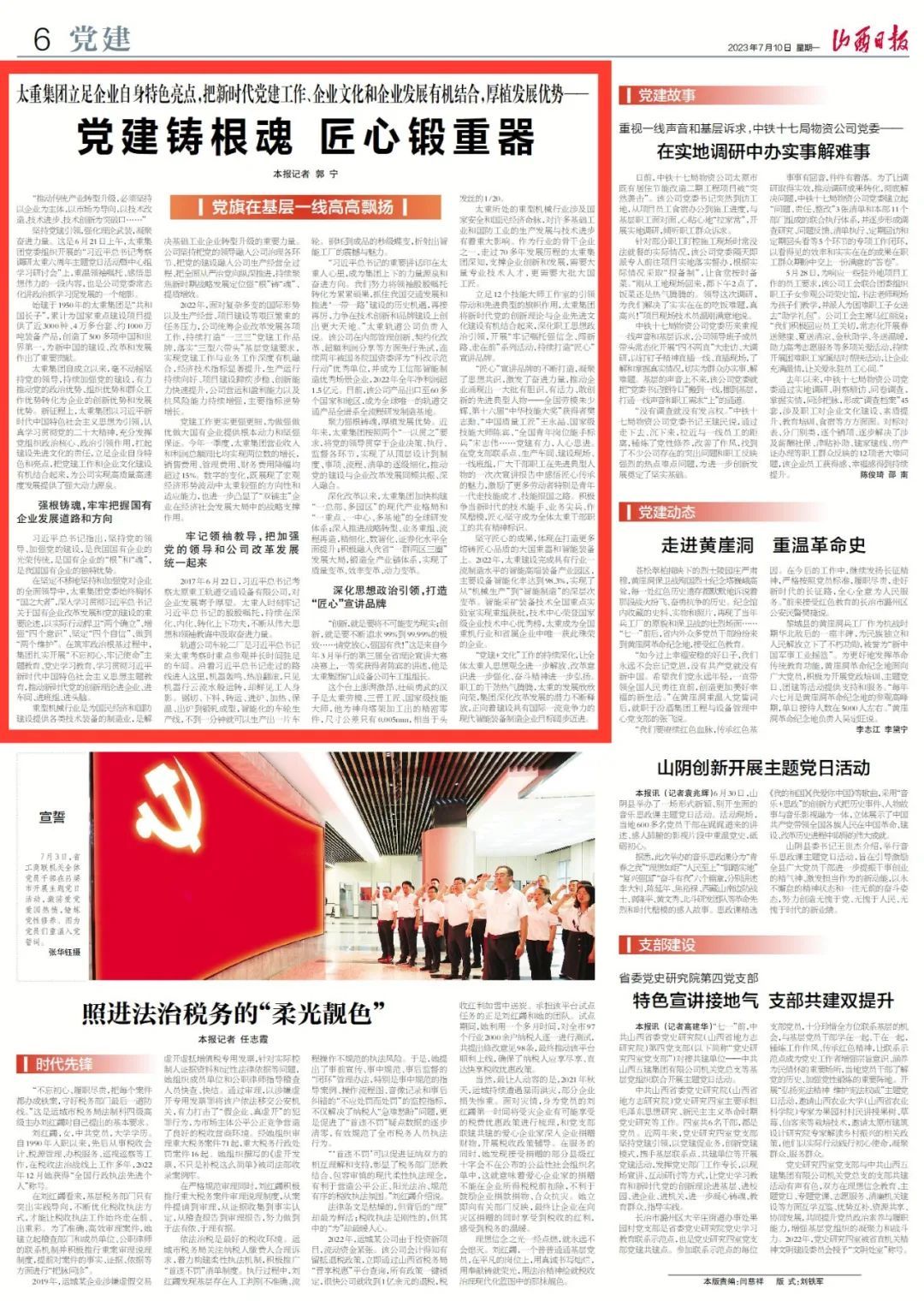 今天,山西日报刊发《党建铸根魂 匠心锻重器》文章,聚焦永利赌场