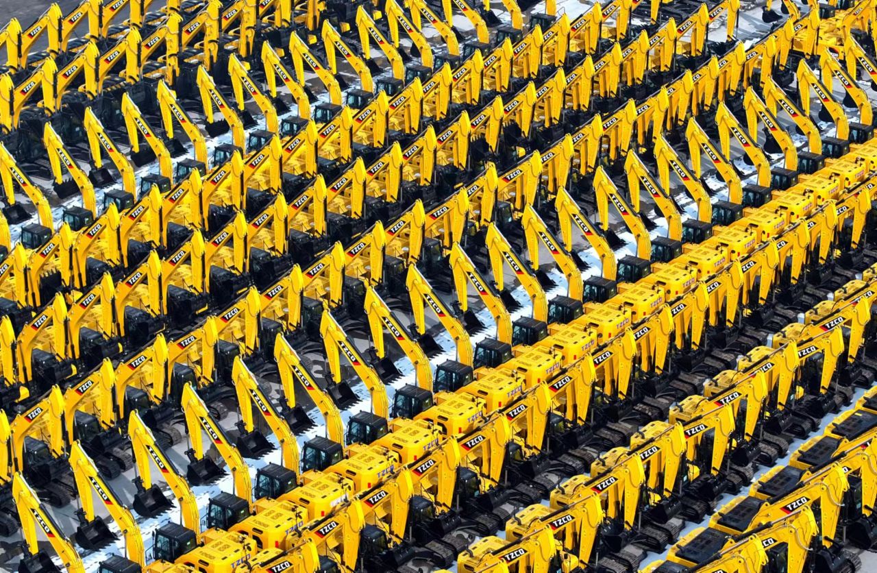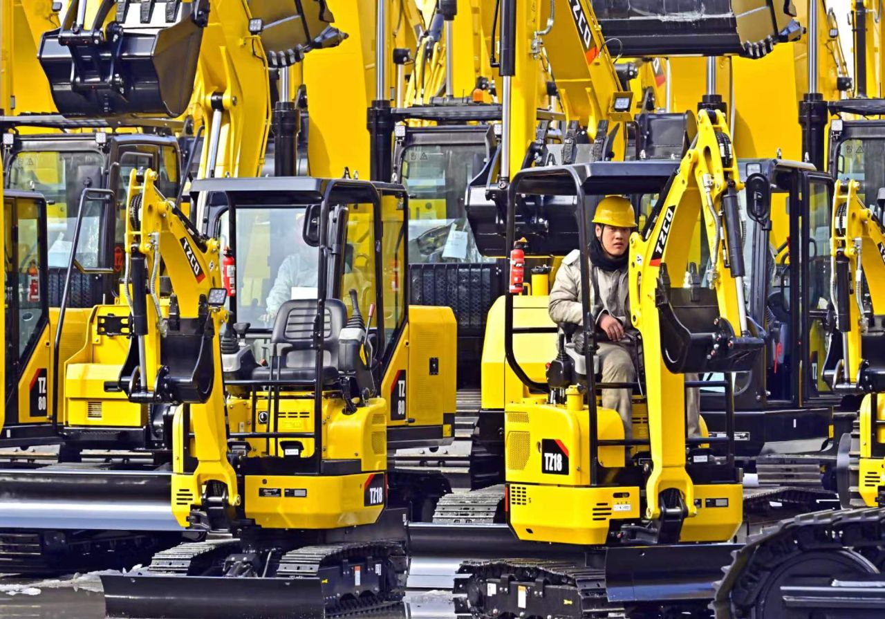 工程机械有限公司产品整车场,数百台各类工程机械挖掘机整装待发。当日,工程机械公司制造中心成功调试出TZ60-IV 408#、TZ225-IV 64#两台初检“零”问题产品,为打造“零缺陷”产品迈上了一个新的台阶。