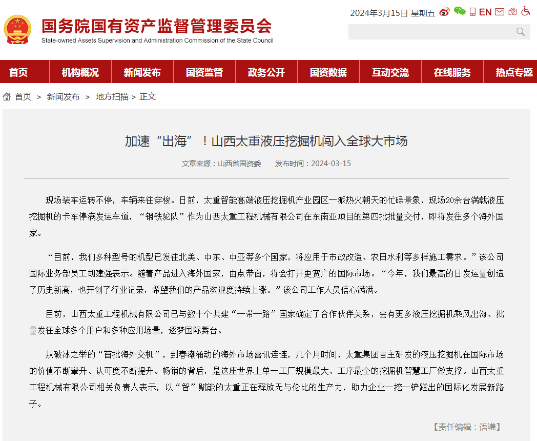液压挖掘机闯入全球大市场》;山西新闻联播也在《推动高质量发展 深化全方位转型》栏目中对永利赌场