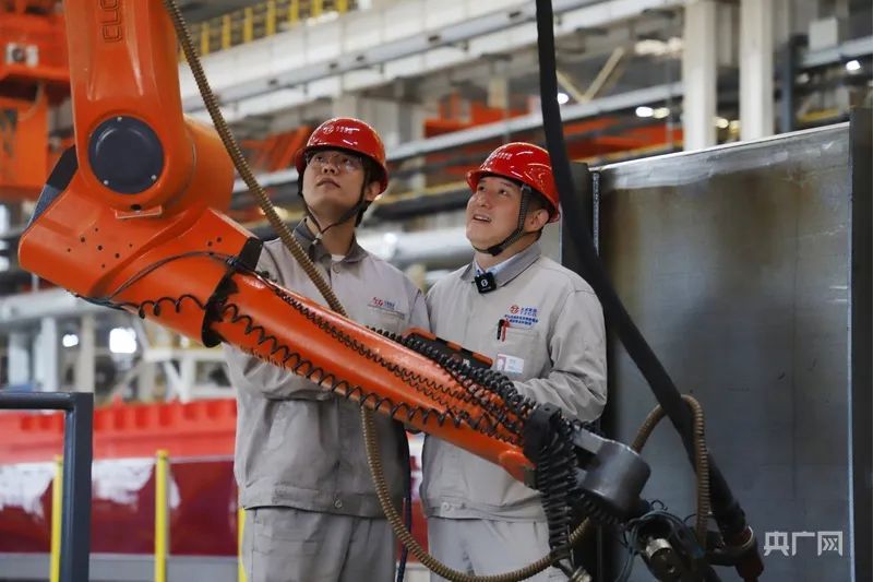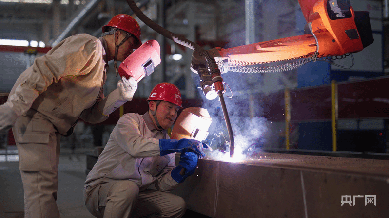 “2019年,我们购买了一台焊接机器人先行先试,研究机器人在焊接方面的优缺点,为大规模应用探路。现在,已有300多台焊接机器人在生产一线工作,尤其是在重复焊接中效率非常高。”樊志勤介绍。虽然这些机器人“生”来自带焊接基因,但对于需要丰富经验加持的高难度焊接工作,机器人“徒弟”还得师傅“手把手”地教。“尤其是一些特殊构造、材质、工艺要求的焊接,我们要把积累多年的人工焊接技术经验,变为机器人能听懂的程序语言,让机器人的焊接技术更全面、精准。”樊志勤说。