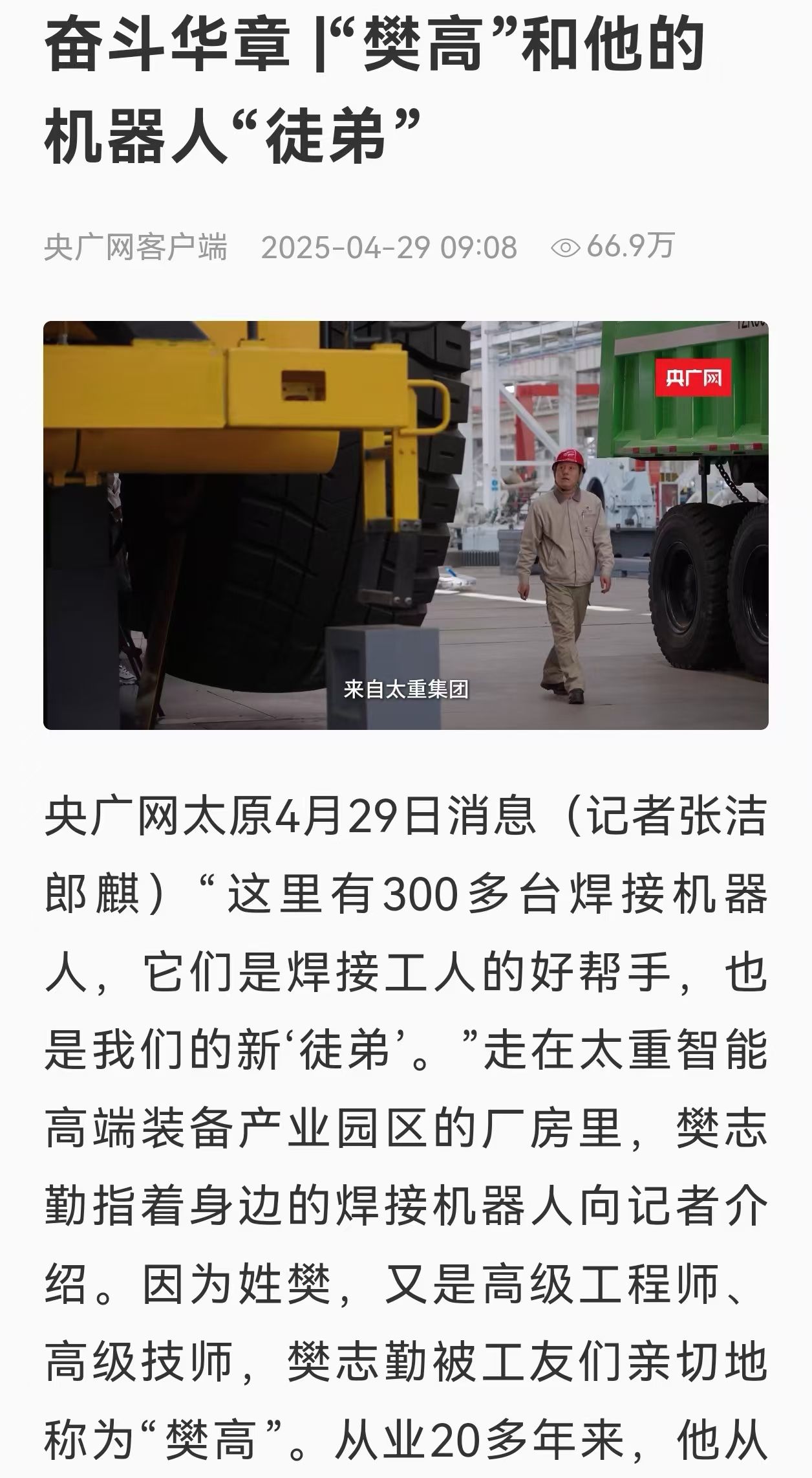 在这属于劳动者的节日里,让我们一同走进“樊高”的世界,见证新时代产业工人如何用焊花与代码,书写中国制造新篇章。