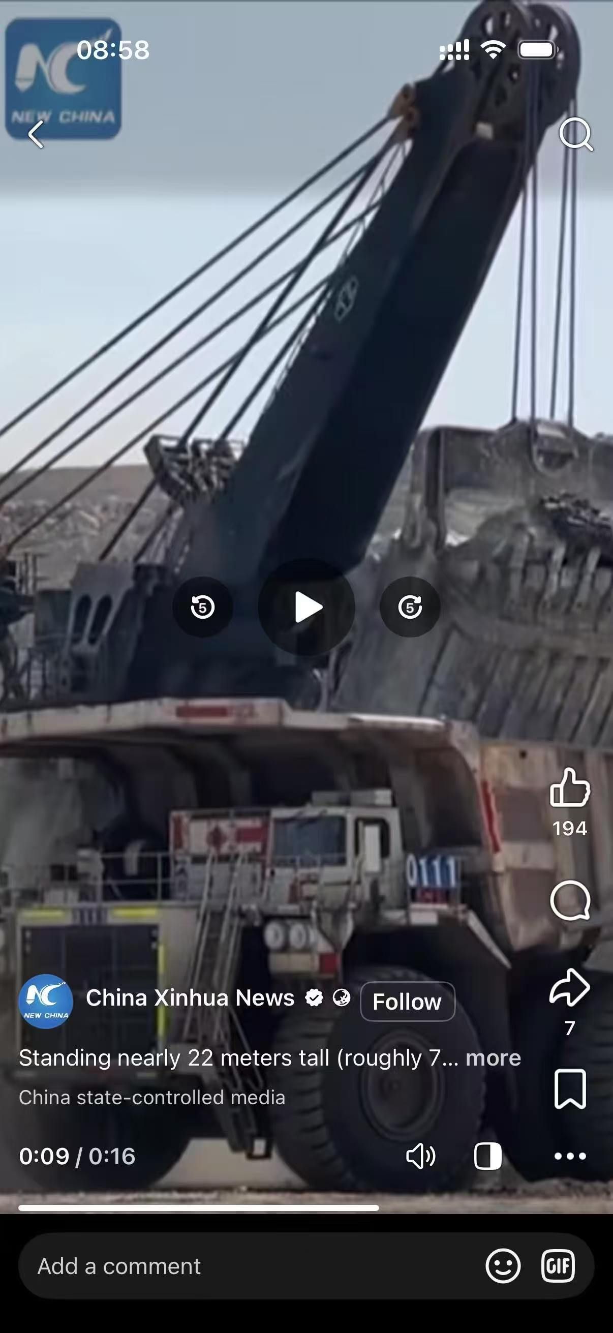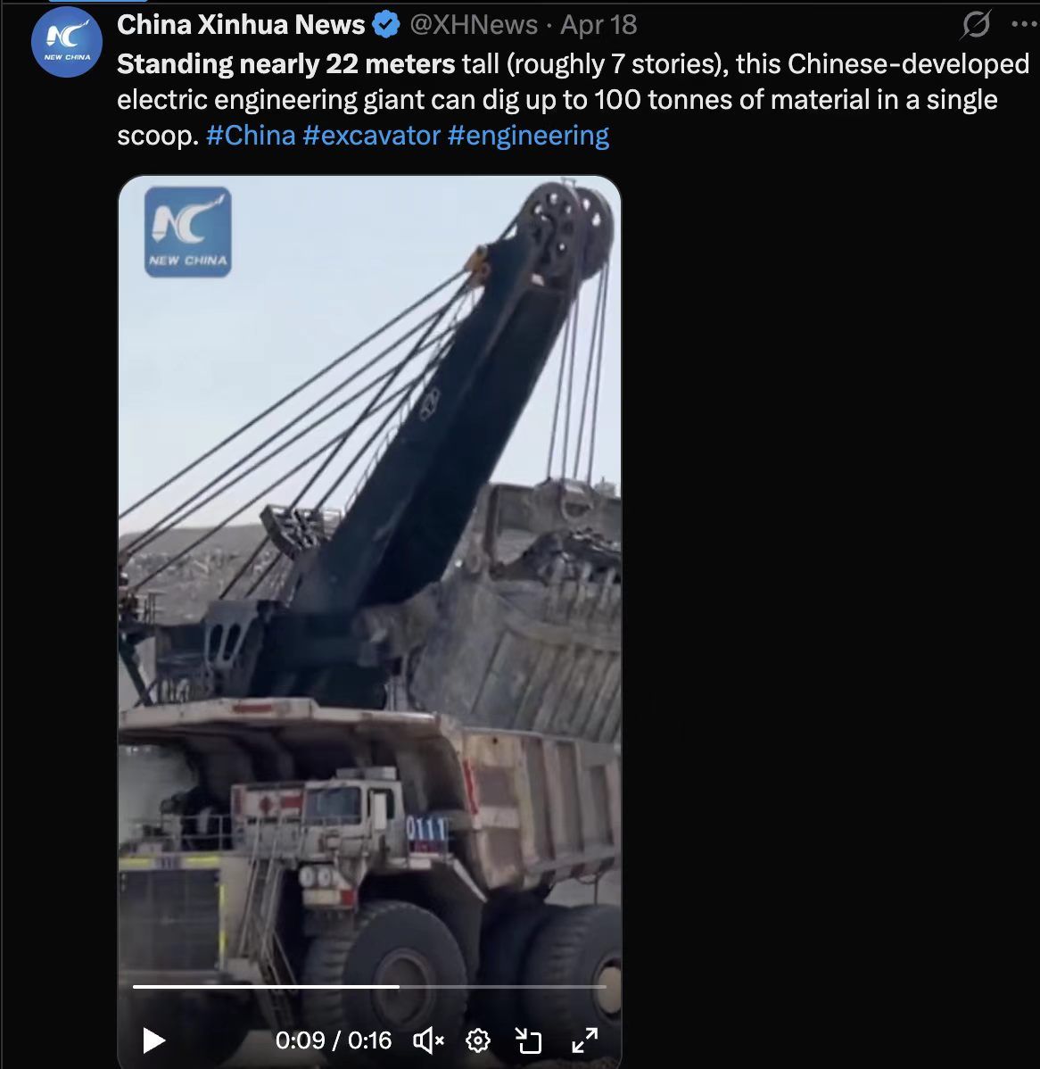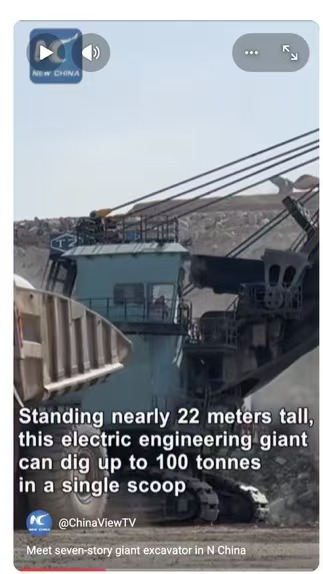 这款中国自主研发的大型矿用电铲,高度近22米(约7层楼高),铲斗挖掘量可达百吨。