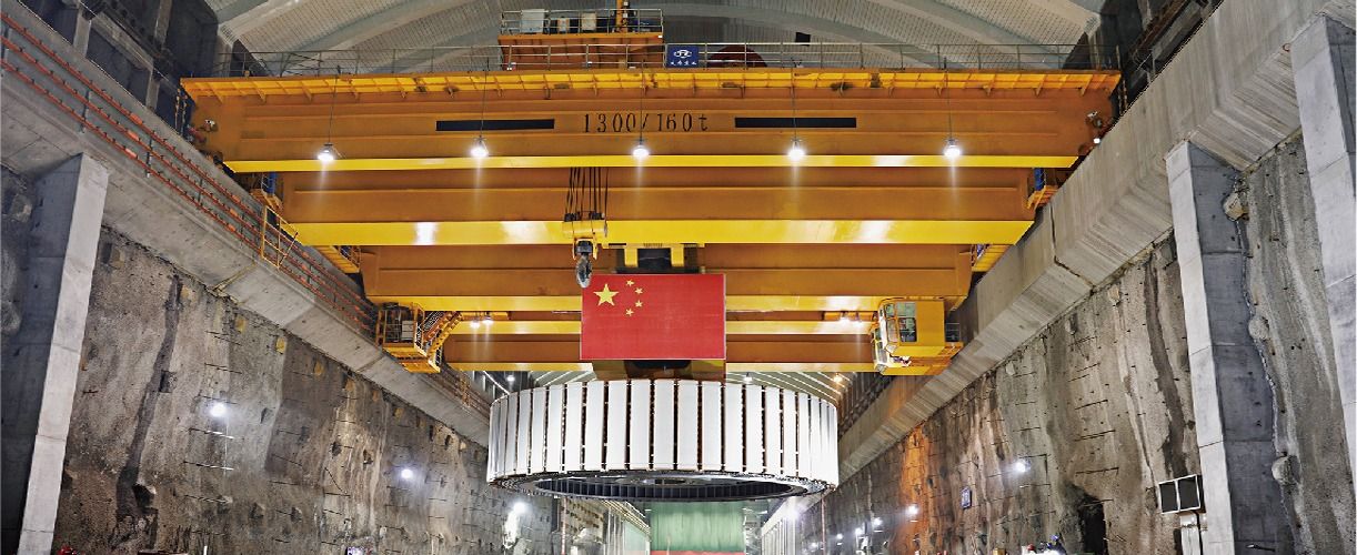 2021年6月28日,永利赌场 生产制造的1300吨桥式起重机,顺利完成了三峡白鹤滩水电站全球首台百万千瓦水电机组吊装任务。